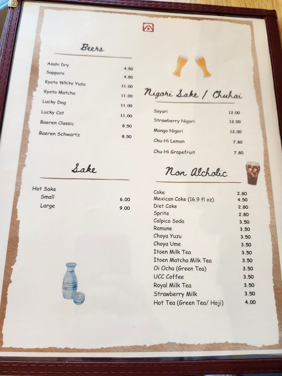 Beverage options include sake, complementing the food selections. The menu is structured to accommodate casual dining with quick ordering at the front counter, suitable for lunch or dinner. Customers generally handle tasks such as ordering, picking up food, and clearing trays themselves, supporting a fast-casual service style.